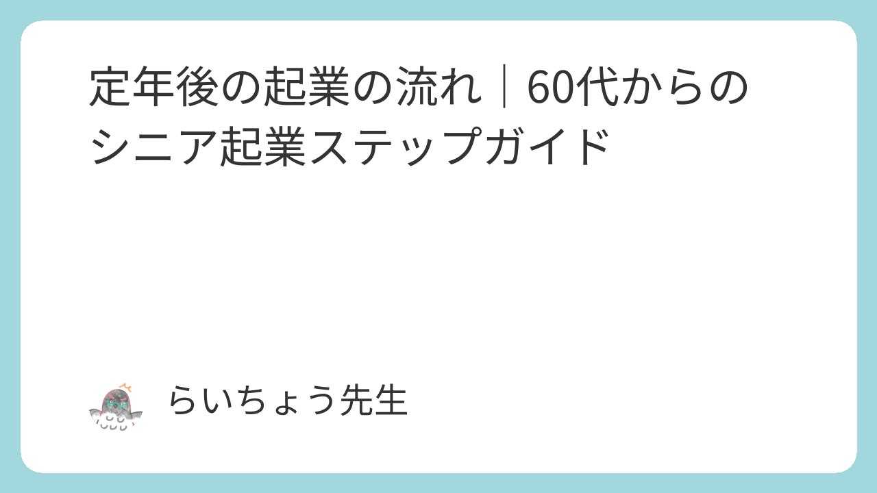 ※資金の調達方法や補助金の詳細は、別記事『定年後起業とお金|退職金・融資・補助金の基礎知識』で解説します。