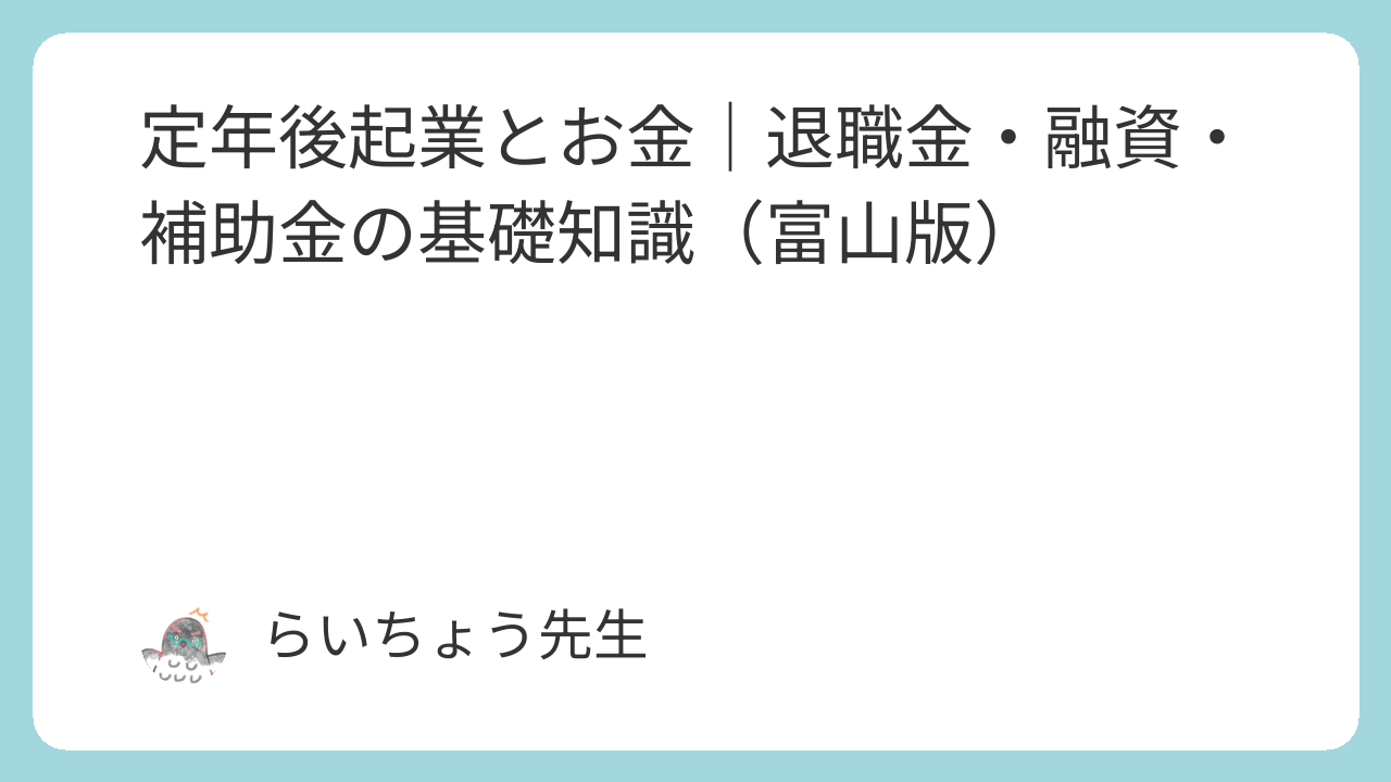 定年後起業とお金|退職金・融資・補助金の基礎知識(富山版)
