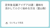 行政書士らいちょう事務所では、富山県全域でシニア起業支援を行っています。